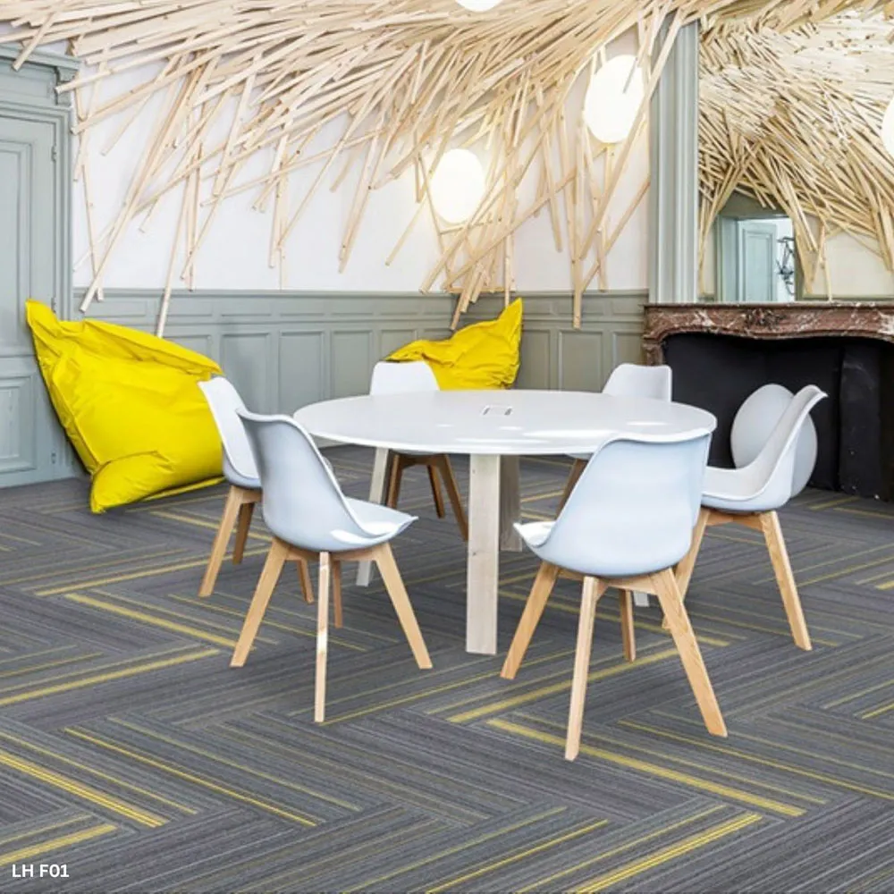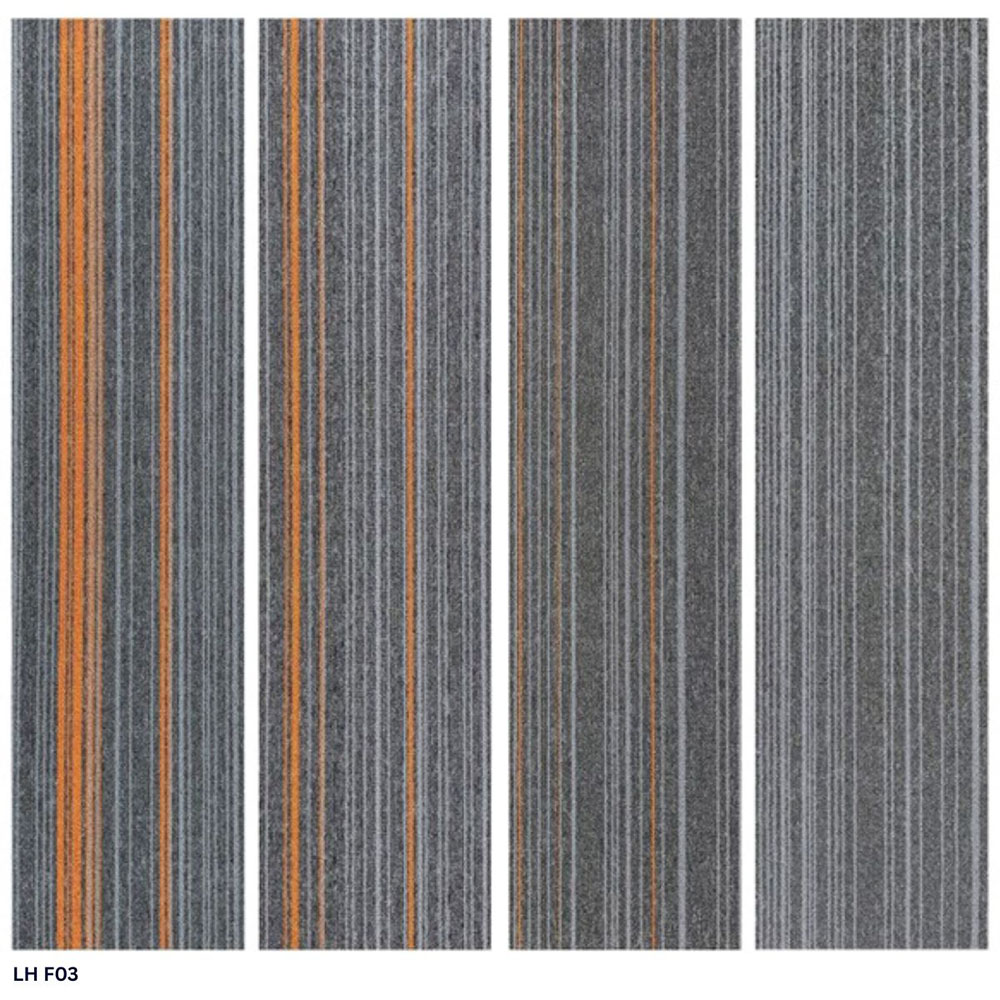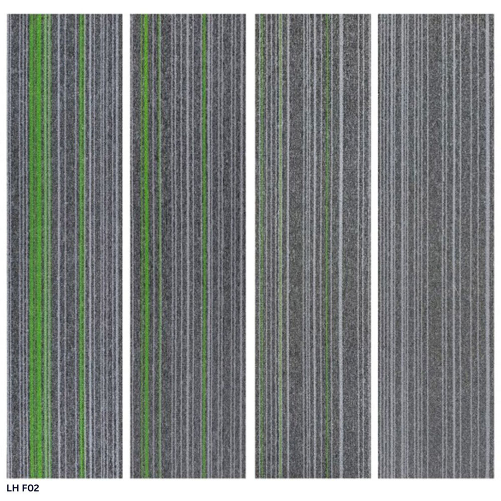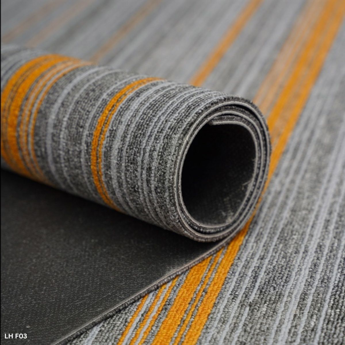 Thảm gạch Newline là dòng sản phẩm nổi bật với thiết kế sọc dọc hiện đại, tinh tế, kết hợp hài hòa giữa các tông màu xám chủ đạo và các đường nhấn màu neon đầy sáng tạo. Họa tiết này không chỉ tạo cảm giác chuyển động thị giác mà còn mang lại chiều sâu và sự cá tính cho không gian lắp đặt.