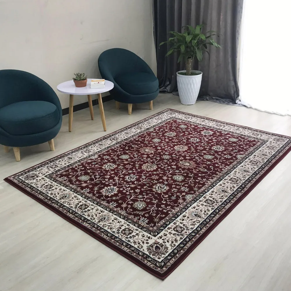 Thảm trang trí 1023A-RED mang sắc đỏ đô trầm ấm, kết hợp cùng họa tiết hoa lá dây leo đối xứng, tạo nên vẻ đẹp thanh lịch và hài hòa. Các họa tiết hoa cách điệu được sắp xếp tinh tế, trải đều trên toàn bộ mặt thảm, giúp không gian trở nên sang trọng và ấm cúng. Viền thảm màu kem nhã nhặn, trang trí hoa văn cổ điển, làm nổi bật tổng thể. Đây là lựa chọn lý tưởng cho phong cách nội thất Classic, Neo-Classic, Indochine, phòng khách hoặc sảnh lớn, mang đến vẻ đẹp vượt thời gian.