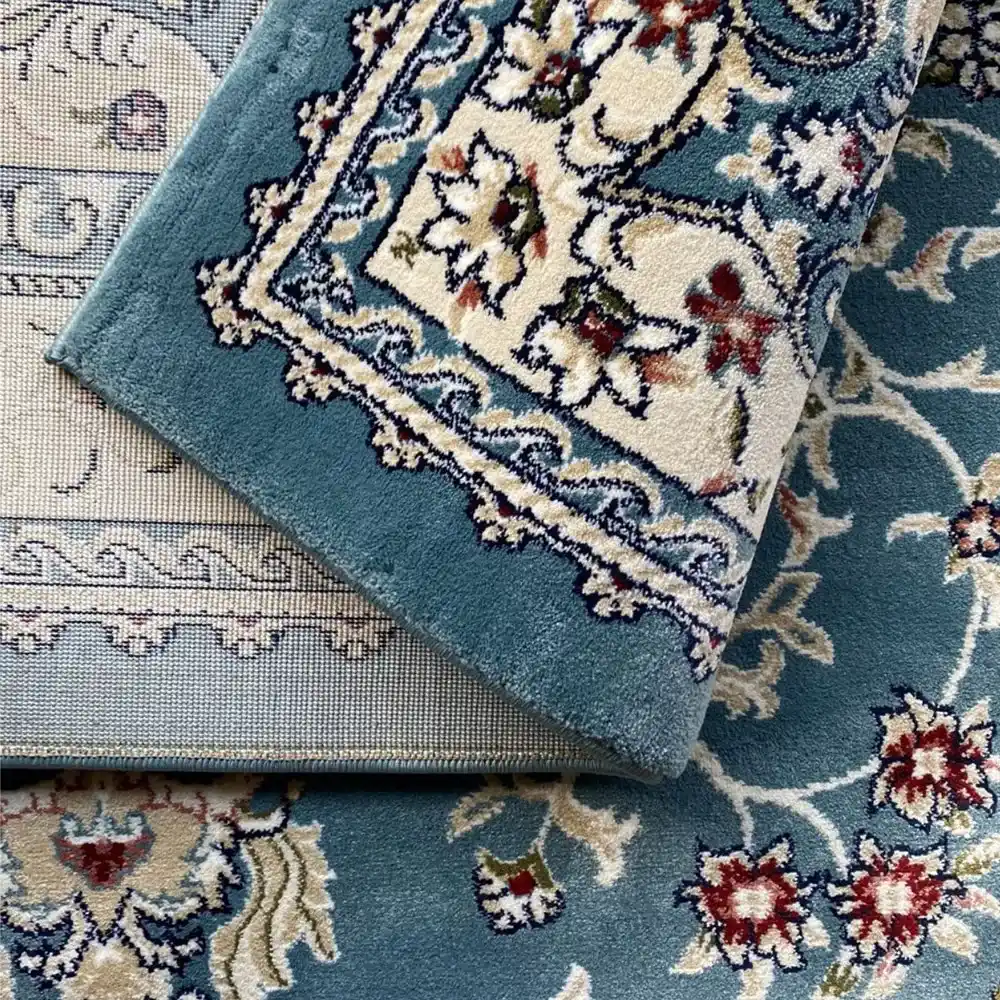 Thảm trang trí 6609A-BLUE sở hữu thiết kế phong cách Ba Tư với họa tiết hoa lá đối xứng tinh xảo. Trung tâm là bông hoa cách điệu, bao quanh bởi hoa văn mềm mại. Tông màu xanh ngọc & kem, tạo cảm giác tinh tế, nhẹ nhàng. Phù hợp phòng khách, phòng ngủ, phong cách nội thất Neo Classic, Classic, Vintage, Retro hay Scandinavian.