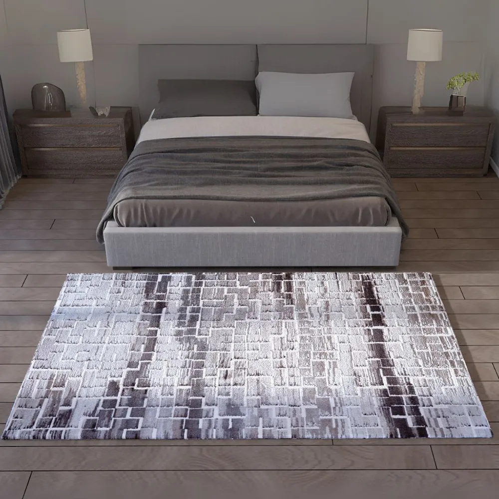 Thảm trang trí AU1003 mang vẻ đẹp hình học trừu tượng, với các khối vuông và chữ nhật xếp lớp như những tòa nhà trong một đô thị hiện đại thu nhỏ. Những đường viền trắng, uốn lượn góc cạnh, tạo thành mạng lưới giống như bản đồ thành phố nhìn từ trên cao. Thiết kế không theo trật tự cố định, nhưng lại mang đến một nhịp điệu tự nhiên, đầy cuốn hút và giàu chiều sâu thị giác. Sự ngẫu nhiên có chủ đích ấy khiến người nhìn như bị dẫn dắt vào một hành trình khám phá trực quan đầy cảm hứng. Tấm thảm này sẽ trở thành điểm nhấn ấn tượng trong không gian mang phong cách Modern, Minimalist, Contemporary, Urban, Japandi hoặc Industrial.