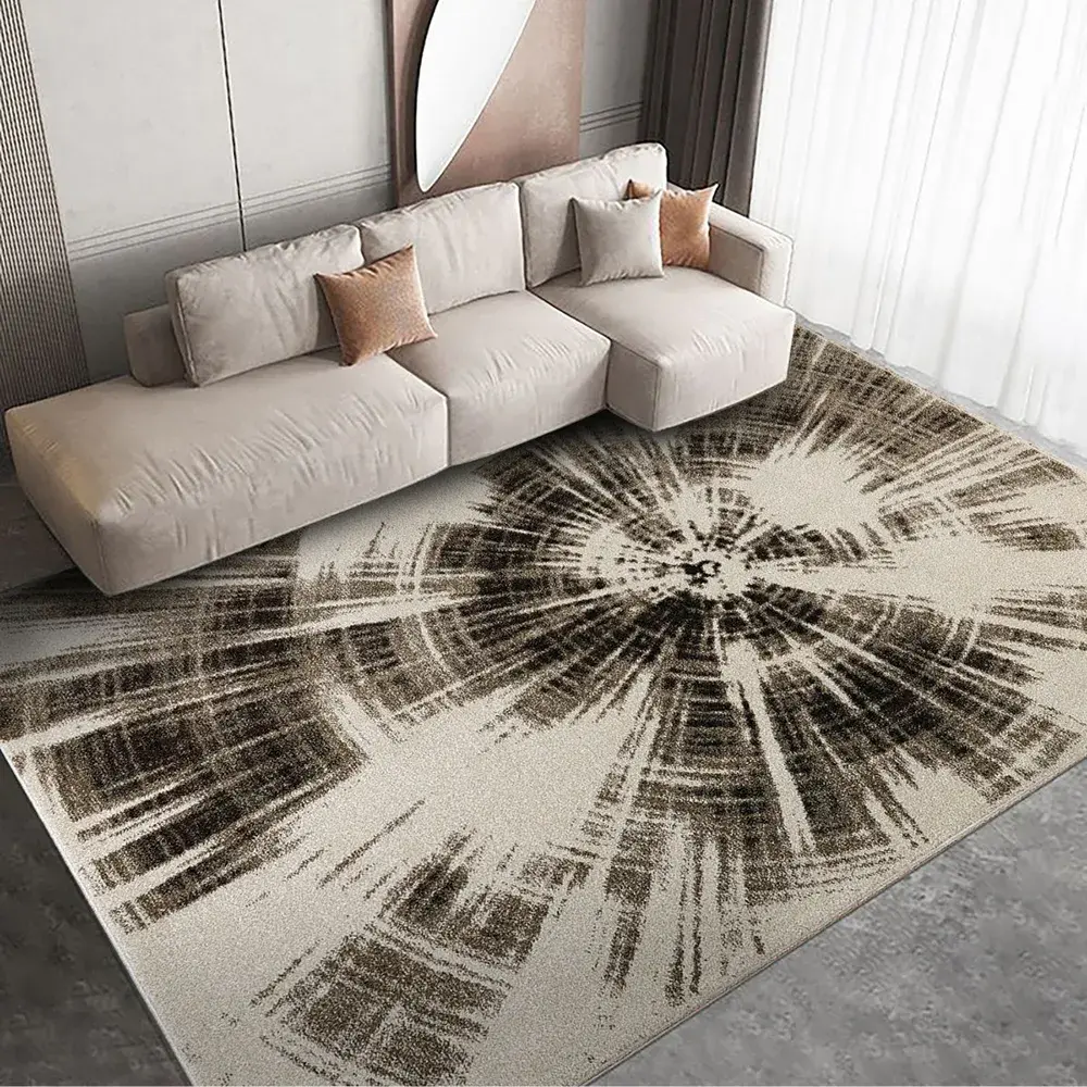 Thảm trang trí H571A-FLD36 sở hữu thiết kế phá cách với họa tiết lan tỏa, tạo hiệu ứng thị giác mạnh mẽ như những tia sáng bùng nổ đầy nghệ thuật. Họa tiết hình học không hề cứng nhắc, mà ngược lại, mang theo hơi thở sống động của cảm xúc. Những vòng xoáy lan tỏa không chỉ gợi nhắc đến những vòng năm trên thân gỗ cổ, mà còn như tiếng vọng của thời gian đang giãn nở trên bề mặt tĩnh lặng. Mỗi nét vẽ như một chuyển động có chủ đích, cuốn người nhìn vào dòng chảy đầy nội lực của sáng tạo. Thiết kế hiện đại, cá tính này phù hợp với nhiều phong cách nội thất như Modern, Minimalist, Industrial, Art Deco hay Contemporary, giúp tạo điểm nhấn độc đáo và thể hiện gu thẩm mỹ tinh tế.