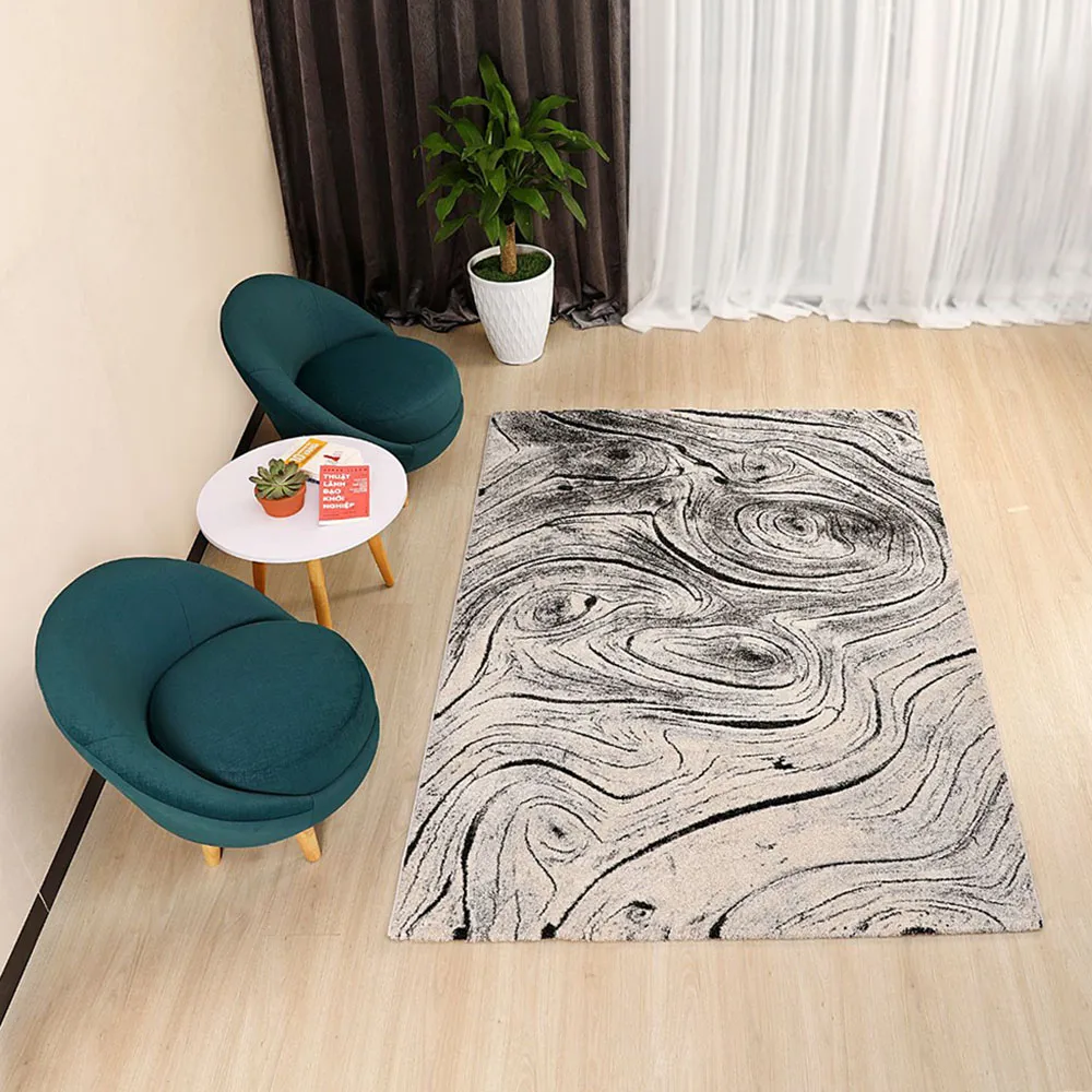Thảm trang trí H665A-FTB63 có thiết kế mô phỏng vân gỗ hoặc vân đá tự nhiên, với các đường nét uốn lượn mềm mại và các vòng xoáy liên tục, tạo hiệu ứng thị giác mạnh mẽ. Họa tiết này gợi cảm giác tự nhiên, tạo điểm nhấn độc đáo cho không gian. Đây là lựa chọn phù hợp với những phong cách nội thất Modern, Minimalist, Scadinavian, Art Deco, Eclectic, Wabi-Sabi hoặc Zen.