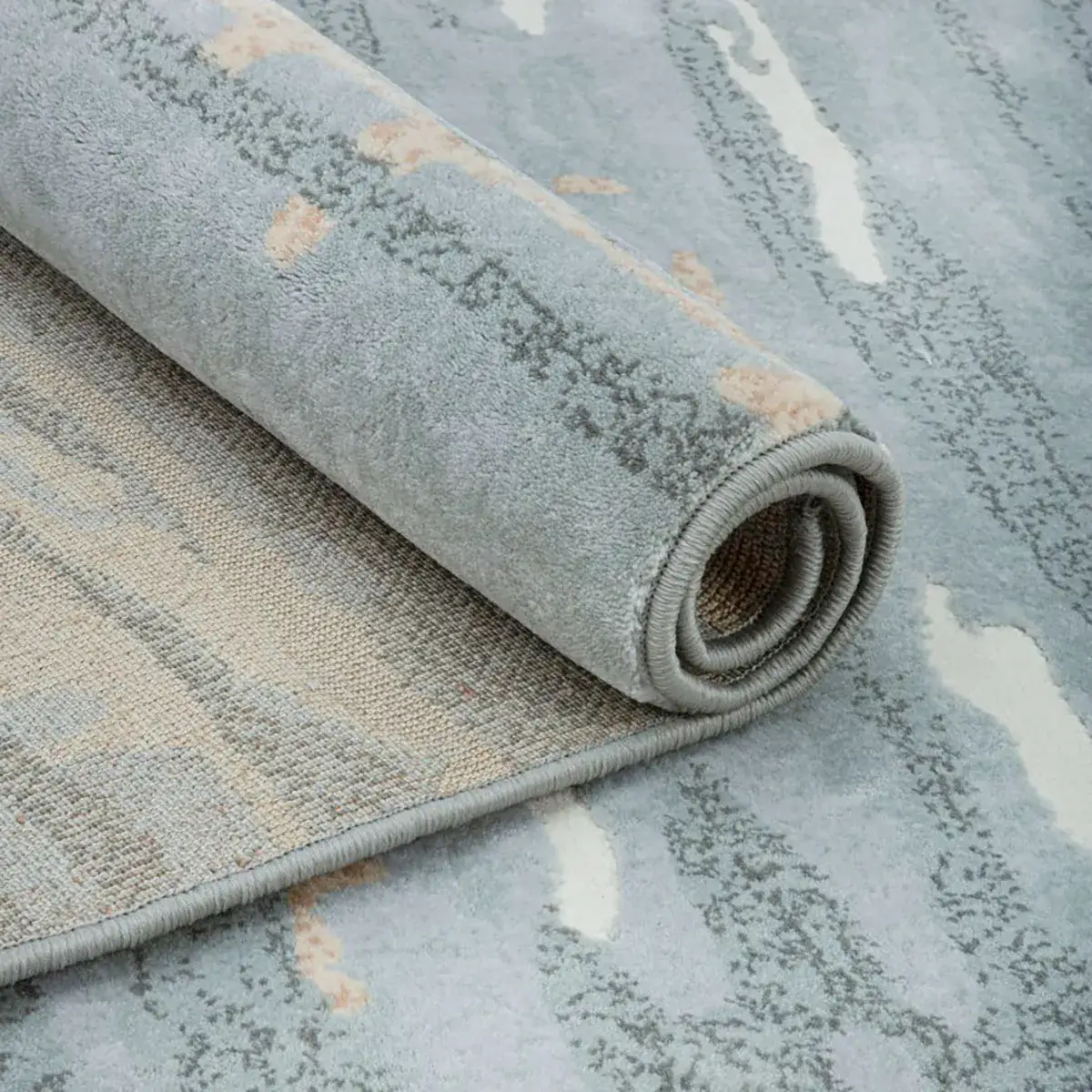 - Thiết Kế Tinh Tế: Thảm sở hữu thiết kế dệt nổi tinh tế, tựa như những khắc họa mềm mại của thiên nhiên, hòa quyện cùng nét cọ phóng khoáng, kiến tạo nên một bức họa nghệ thuật độc đáo. Các sắc độ xanh xám, trắng kem, vàng be uyển chuyển giao thoa, gợi liên tưởng đến vẻ đẹp thanh tao của áng mây. Họa tiết ngẫu hứng khơi gợi cảm hứng về sự tự do, thư thái và chiều sâu thẩm mỹ, góp phần nâng tầm không gian sống.