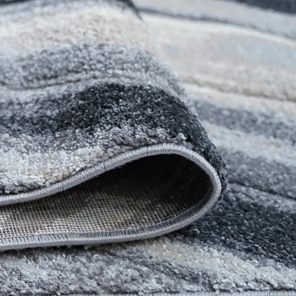- Thiết Kế Tinh Tế: Bảng màu chủ đạo của thảm xoay quanh các sắc độ của xám, được pha trộn theo cách loang màu mượt mà, mang lại hiệu ứng như bút vẽ trên nền vải. Sự chuyển tông uyển chuyển không những tăng tính thẩm mỹ mà còn giúp thảm dễ dàng hòa mình vào nhiều không gian nội thất.