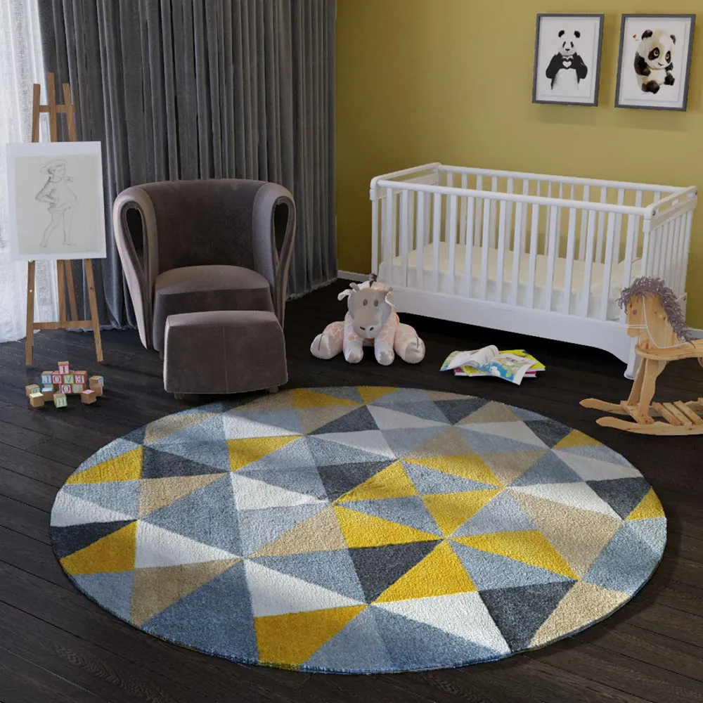 Thảm trang trí RE1001D mang hình dáng tròn đầy mềm mại, tựa như một mặt trăng tĩnh lặng giữa không gian sống. Thiết kế sử dụng những mảng tam giác nhỏ sắp đặt tinh tế theo nhịp điệu hình học đều đặn, tạo nên hiệu ứng thị giác sống động và có chiều sâu. Dù mang yếu tố trừu tượng, bố cục vẫn giữ được sự cân bằng nhờ cách phối và lặp lại hình khối hợp lý, giúp thảm vừa mang tính nghệ thuật, vừa gần gũi và dễ ứng dụng trong không gian hiện đại. Đây là lựa chọn lý tưởng cho phong cách nội thất Modern, Mid-Century, Bohemian hay Scandinavian.